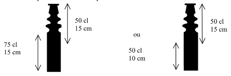 - En déduire, d’après la première mesure de Jean, que ¾ de litre (75 cl) occupent 15 cm de hauteur dans la partie cylindrique.