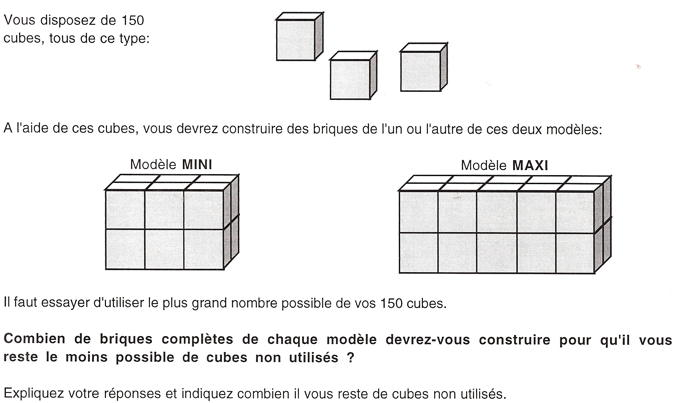 A l'aide de 150 blocs unité, fabriquer des briques de 12 blocs ou 20 blocs en utilisant le plus possible de blocs unités.