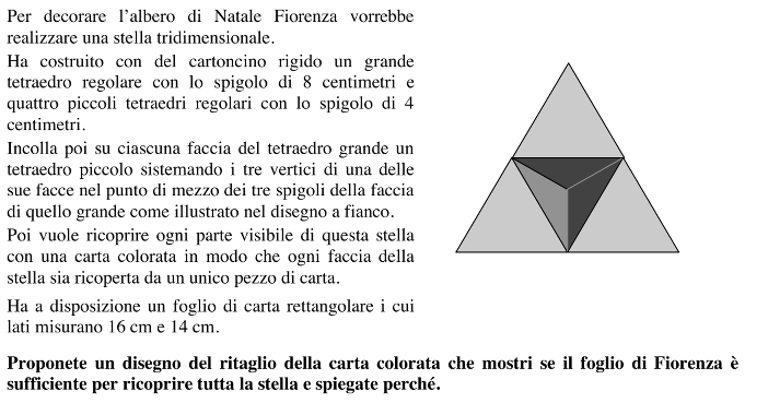 Controllare e rappresentare con un disegno la situazione per cui con un rettangolo di carta di dimensioni 14 e 16 cm si riesce o no a coprire una stella costituita da un tetraedo regolare, formato da 24 triangolini equilateri.