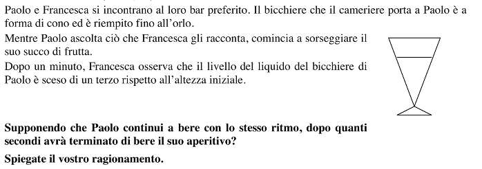 Calcolare e confrontare i volumi di un cono e di un tronco di cono facendo riferimento al rapporto di similitudine sul liquido consumato rispetto al tempo impiegato a berlo.