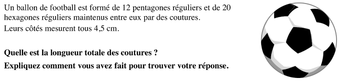 Calculer la longueur totale des coutures qui unissent les pièces d’un ballon de football : 12 pentagones réguliers et 20 hexagones réguliers dont la mesure des côtés est 4,5 cm.