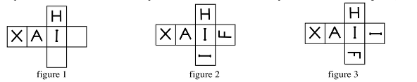 - Le X est sur la face à gauche de A selon la troisième photo, il le sera aussi sur le développement. Les quatre cases A, I, H et X complétées, il reste deux cases libres pour l’autre I et pour F (figure 1)