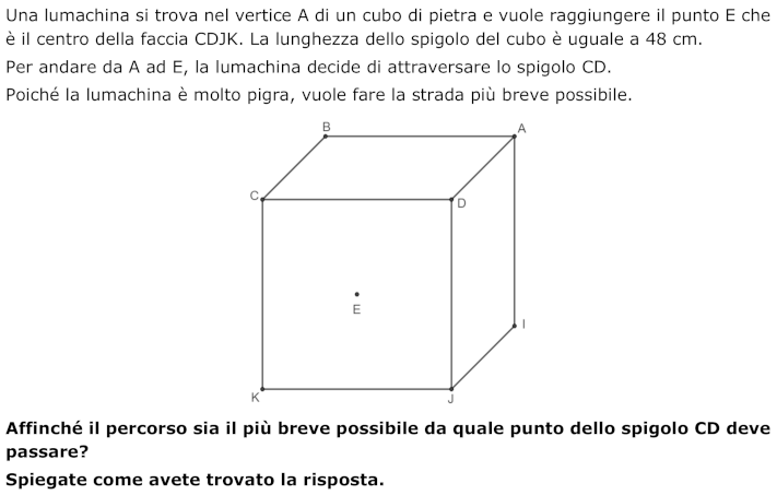 - Comprendere che può essere vantaggioso considerare lo sviluppo sul piano del cubo delle due facce adiacenti sulle quali il percorso più corto è il percorso APE con A, P, E allineati.