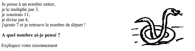 Trouver le nombre qui ne change pas par la suite d'opération (x 3) (-11) (/4) (+7).
