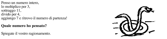 Operazioni successive: moltiplicare per 3 un numero intero, sottrarre 11, dividere per 4, aggiungere 7, per ottenere il numero di partenza.