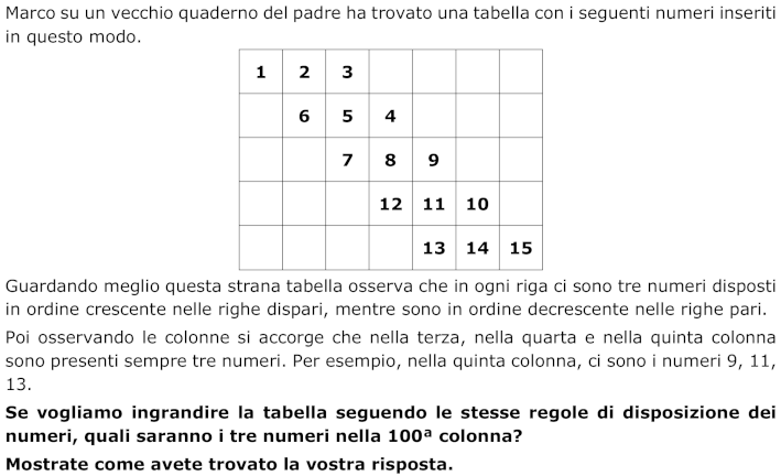Trovare i numeri che compariranno nella 100ª colonna di una tabella, scoprendo le varie regolarità sia sulle colonne, sia sulle righe, sia sulle diagonali.