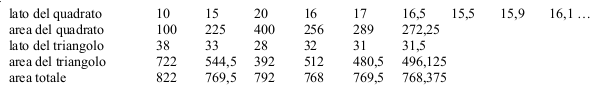 e organizzarli per constatare che il valore più piccolo dell’area totale (768) è dato dal lato del quadrato che misura 16 cm.