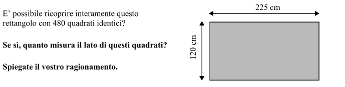 Decidere se si può ricoprire un rettangolo i cui lati misurano 120 x 225 cm, con 480 quadrati identici, in caso affermativo determinare la misura del lato dei quadrati.