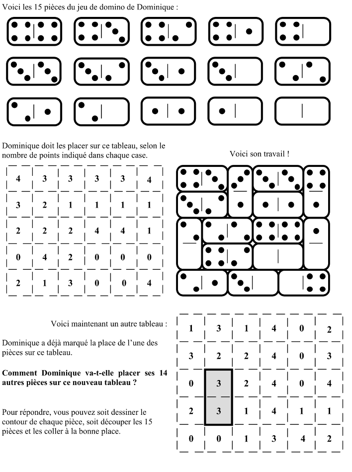 - Repérer la pièce de domino (3 - 3) déjà placée et celles restant à placer.