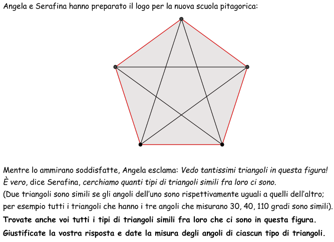Identificare i triangoli formati dalle diagonali e dai lati di un pentagono regolare poi classificarli in famiglie di triangoli simili.