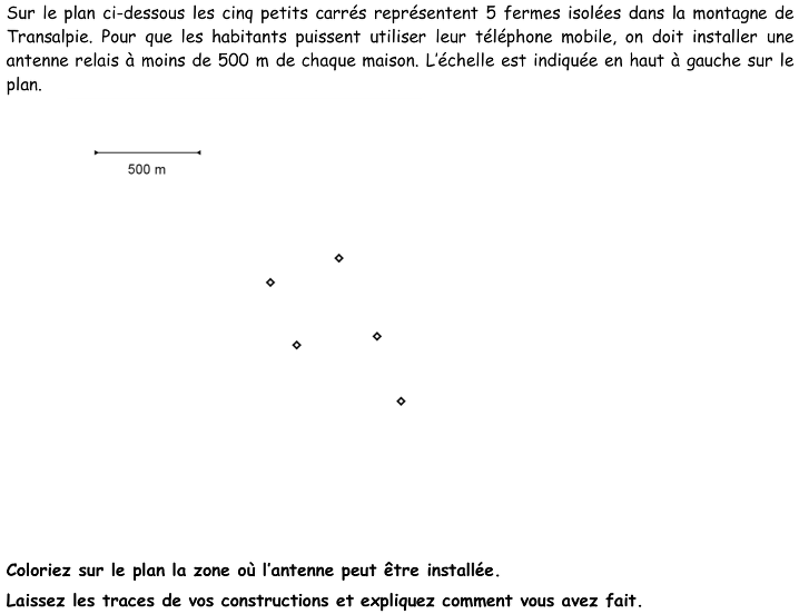 - Comprendre que l’antenne doit être à moins de 500 m de chacune des maisons.