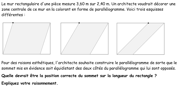 - Conclure que dans le parallélogramme cherché, la distance entre le sommet P et le sommet D du rectangle de 1 m.