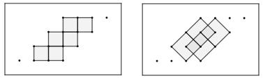 Ou, procéder par construction effective de carrés de façon organisée, par exemple selon la longueur des côtés (carrés de côté 1, de côté 2, de côté oblique) ou en partant d’un point donné, puis d’un autre …