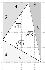 Dessiner un triangle dont les sommets sont placés sur des sommets des carrés d'un quadrillage 1cm x 1cm et dont les côtés mesurent √41 cm, √45 cm et √68 cm.