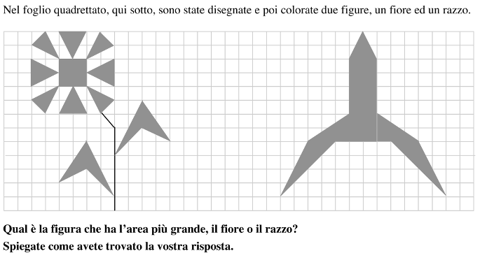 La determinazione delle aree dei triangoli isosceli inscritti in un quadrato 2x2 (testa del razzo e quattro petali del fiore) è corretta nella maggior parte degli elaborati.