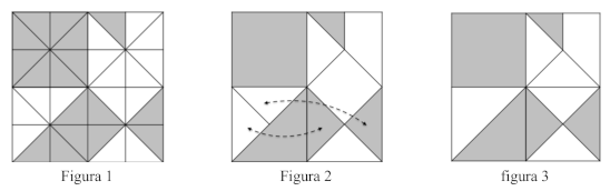 - Mettere in evidenza figure che consentono un confronto percettivo delle aree per esempio rilevare i quattro quadrati identici (vedi figura 3) in cui può essere suddiviso il collage e accorgersi che: