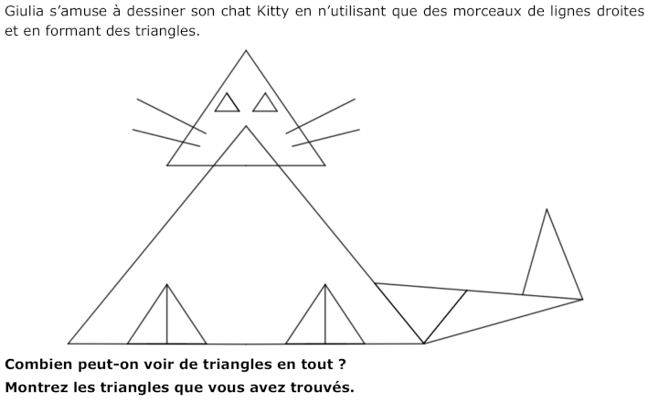 Déterminer le nombre de triangles que l'on peut observer dans une figure composée de segments représentant un chat.