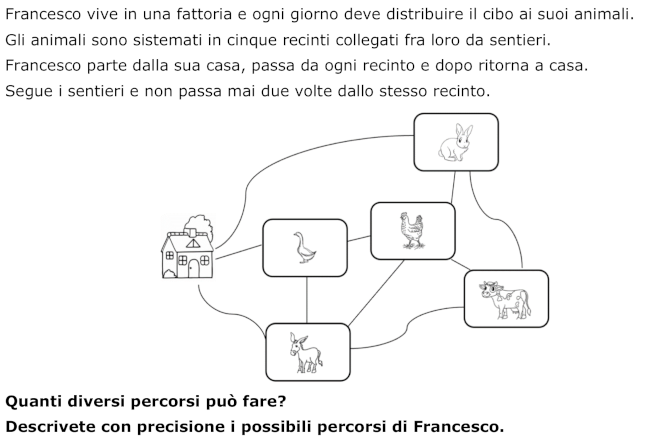 - Rendersi conto che Francesco deve passare da ogni recinto una sola volta, percorrendo i sentieri e partendo dalla casa per ritornarvi alla fine del percorso.