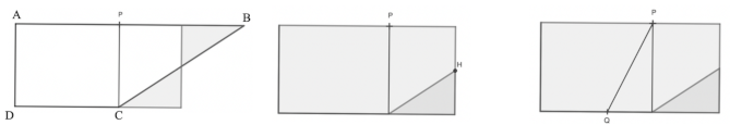 Observer maintenant que le segment [PQ] divise le trapèze d'origine en un trapèze rectangle et un autre trapèze non rectangle.