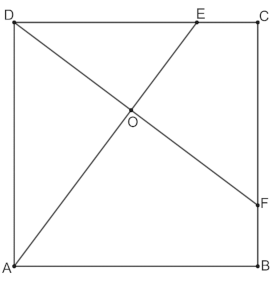 - Applicare l’uguaglianza dei rapporti di similitudine: AO/AD = AD/AE = 20/25 = 4/5, DO/DA = DE/AE = 15/25 = 3/5. - Da cui le misure dei lati (in cm): AO = 20×4/5 = 16 e DO = 20×3/5 = 12. Inoltre, OE = 25 – 16 = 9. Oppure - Calcolare la misura dell’altezza del triangolo DAE relativa alla base AE: DO = (20 x 15 )/25 = 12 (in cm). Calcolare le misure dei segmenti AO, OE tramite il teorema di Pitagora e/o di Euclide, per esempio: OE = √15! − 12! =√81 = 9 (in cm) e AO = √20! − 12! =√256 =16 (in cm). Dedurre le misure delle aree richieste (in cm2): area (DAO) = (16´12)/2 = 96; area (DOE) = (12´9)/2 = 54; area (EOFC) = area (DFC) – area (DOE) = (20´15)/2 – 54 = 96; area (ABFO) = area (ABCD) – area (DAO) – area (DOE) – area (EOFC) = 400 – 96 – 54 – 96 = 154.