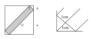 Par exemple considérer le plus petit carré dans lequel on peut inscrire le rectangle le long d’une diagonale (dessin de gauche). Utiliser la propriété de Pythagore pour calculer 2a2 = 144 –> a = √72 et 2b2 = 4 –> b = √2