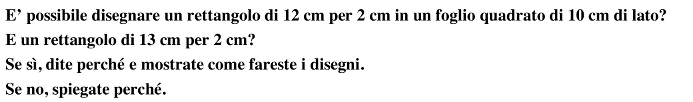 - Scartare le risposte impulsive come «sì, perché l’area del rettangolo è più piccola di quella del quadrato» o «no, perché la lunghezza del rettangolo è maggiore del lato del quadrato» e rendersi conto che non si può disporre i lati del rettangolo parallelamente a quelli del quadrato.