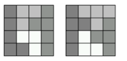 Savoir reconnaître les pièces dans différentes positions : permanence ou invariance des figures géométrique par translation, rotation ou symétrie axiale (ou « retournement) et essayer de trouver les dispositions correspondant aux décompositions optimales de 16. On peut aussi trouver les compositions par essais successifs.