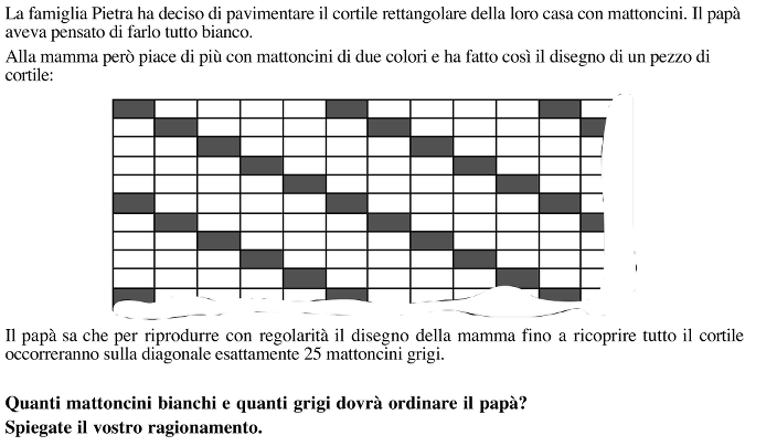 Pavimentare un rettangolo con mattoncini bianchi e grigi, secondo un modello dato, ma incompleto. Ricerca del numero di mattoncini di ogni tipo.