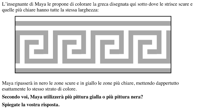 Un fregio regolare รจ composto da fasce della stessa larghezza in un motivo "greco" a due colori. Confrontare le aree delle parti di ciascuno dei due colori.
