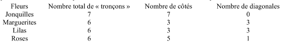 - Comparer les quatre parcours minimaux obtenus : « chemin des jonquilles », « chemin des marguerites » ... (toujours à l’aide des critères précédents) en s’aidant éventuellement d’une disposition en tableau :