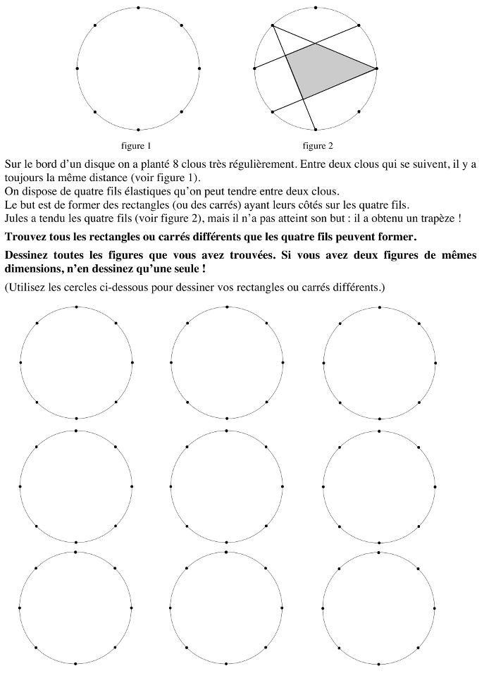 Construire des rectangles dont les sommets se trouvent sur 4 points d'un cercles parmi 8 répartis régulièrement.