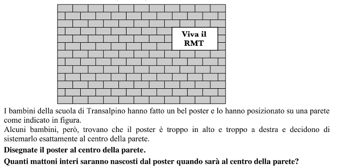 Su una pavimentazione rettangolare di "mattoni" (rettangoli e mezzi-rettangoli quadrati sui bordi), spostare un rettangolo (di 3 su 3) che copre 8 mattoni interi e 2 quadrati, con una traslazione, in modo che si trovi esattamente al centro della pavimentazione e constatare che copre 7 mattoni interi e 4 quadrati.