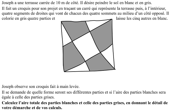 La terrasse de Joseph est un problème « consistant » pour la construction des connaissances géométriques, mais évidemment, au vu des résultats obtenus, « assez difficile » pour des élèves de 13 à 16 ans dans les conditions de passation des épreuves du RMT.