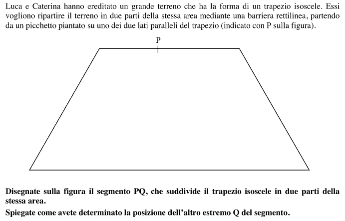 - Notare che il punto P è sulla base minore, ma non nel suo punto medio. - Comprendere che occorre tracciare un segmento PQ non perpendicolarmente alle basi, perchè in tal modo le due parti non avrebbero la stessa area.