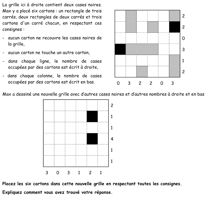 - Comprendre que chaque carton ne doit toucher aucun autre carton ni recouvrir une case noire.
