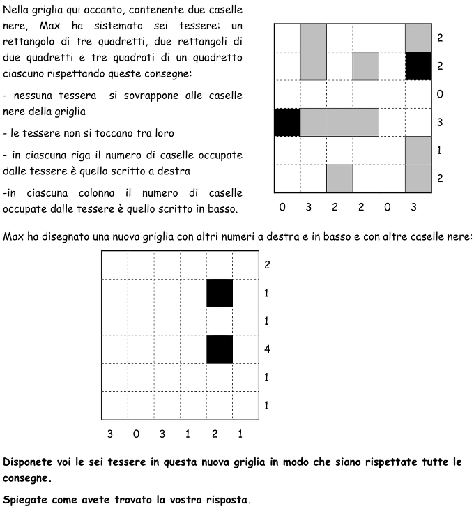 - Comprendere che ogni tessera, non deve toccare nessuna altra tessera né sovrapporsi alle caselle nere.
