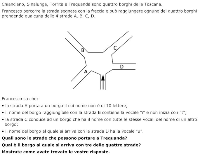 e dedurre che le strade che conducono a Trequanda sono la A e la D e che Sinalunga è raggiungibile dalle tre strade A, B e D.