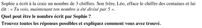 - Conclure que Sophie peut avoir écrit l’un des trois nombres suivants : 125, 250, 375.
