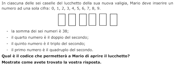 Le conoscenze utilizzate sono terminologiche e si trovano nella formulazione del problema: numero a una cifra, somma, doppio, triplo, quadruplo.