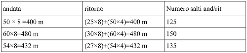 Oppure: con tentativi organizzati relativi alla scelta del numero dei salti dell’andata e dei metri percorsi, si determinano quelli del ritorno fino ad ottenere 135 salti:
