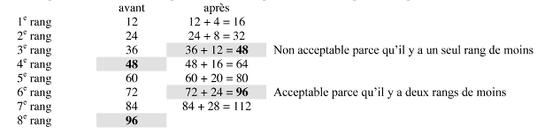 - Procéder par essais en cherchant un multiple commun de 12 et 16 tel que ce soit le ne de 16 et le (n + 2)e de 12.