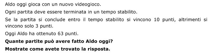 - Osservare che Aldo non può avere concluso ogni partita entro il tempo stabilito perché il punteggio finale (63) non è un multiplo di 10.