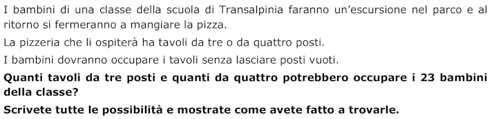 - Disegnare un certo numero di tavoli da tre e da quattro e provare a distribuire i 23 alunni senza lasciare posti vuoti.