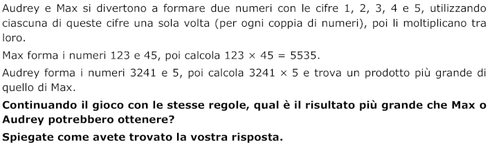 Formare due numeri naturali con le cifre 1, 2, 3, 4 e 5, usate una volta sola, in modo che il loro prodotto sia il più grande possibile.