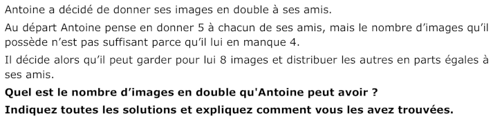 Comprendre que dans ce problème il y a deux inconnues à gérer : le nombre des images et le nombre des amis d’Antoine.