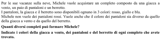 Trovare combinazioni di 3 colori presi a 3 a 3, con restrizioni che portano a 2 x 2 x 2, in un contesto di abiti (giacca. pantaloni, cappello) di diversi colori.