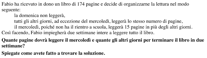 Scomporre 174 in una somma di 12 numeri uguali e 30, in un contesto di lettura di libri.