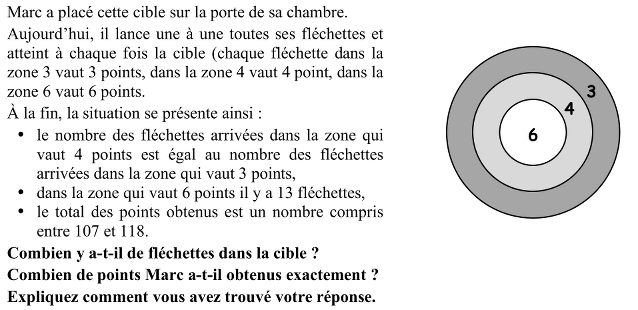 - Remarque SR : Plusieurs classes ont confondu « même nombre de fléchettes arrivées dans les zones 3 et 4 » avec « nombre total de points obtenus dans les zones 3 et 4 »