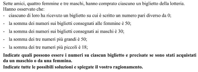 I numeri dei sette amici sono pari e sono tutti diversi poiché sono biglietti di una lotteria.