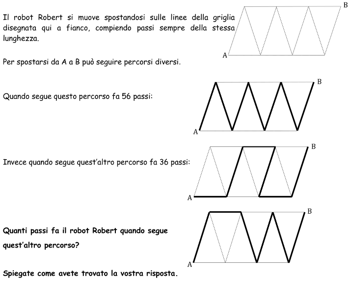 - Comprendere che il robot Robert fa sempre un numero intero di passi per percorrere un segmento della griglia e che per percorrere segmenti uguali impiegherà lo stesso numero di passi perché i suoi passi hanno sempre la stessa lunghezza.